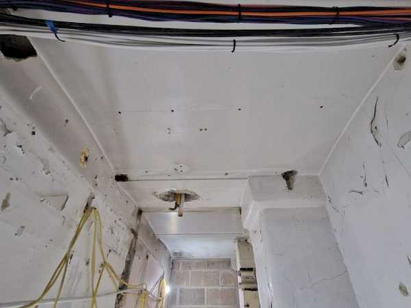 While we were on site we were also given the task to shot blast and prime the fire escape in preparation for repairs and painting. Concrete ceilings were also sandblasted to expose the aggregate giving them an industrial look and to be used as a feature in the cinema room.